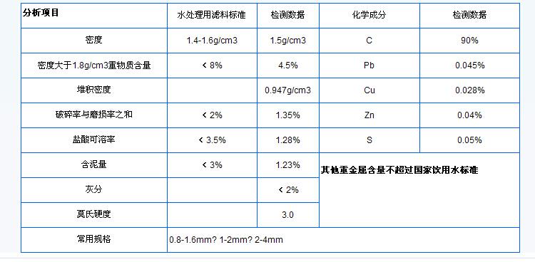無煙煤濾料在水處理中起的作用好壞,直接影響濾過的水質,所以在選擇無煙煤濾料的時候,質量必須符合國家相關標準。下為建設部水處理濾料監(jiān)督檢測中心頒布的CJ/T43 -2005《水處理用濾料》中無煙煤濾料的相關標準。